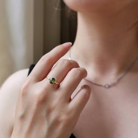 Dainty Minimalist 18K Oval Green Sapphire Ring