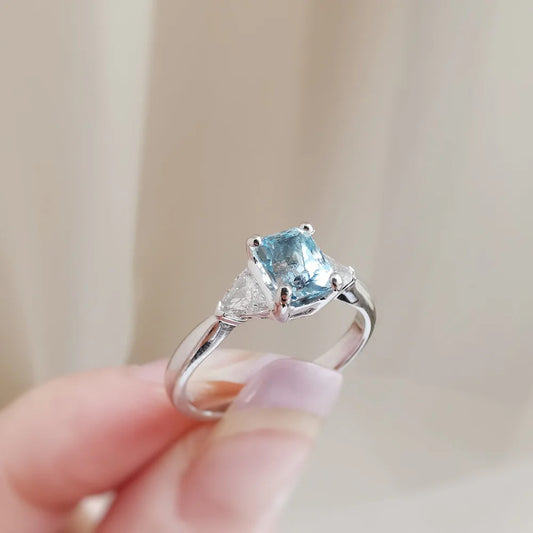 Aquamarine and Diamond Trilogy Ring