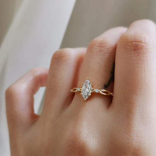 18K Dainty Marqusie Moissanite Ring
