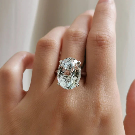18K Oval White Topaz Ring