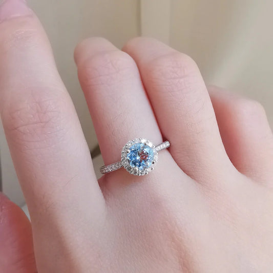 18K Dianty Diamond Halo Aquamarine Ring