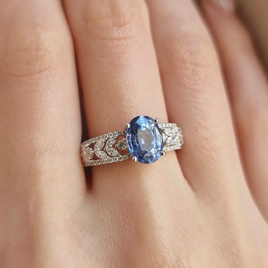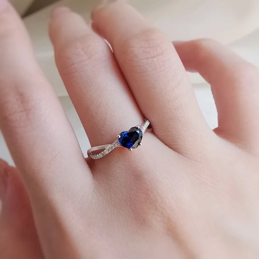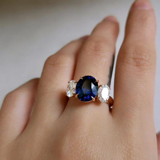 18K Liliana Lab Blue Sapphire Three Stone Ring