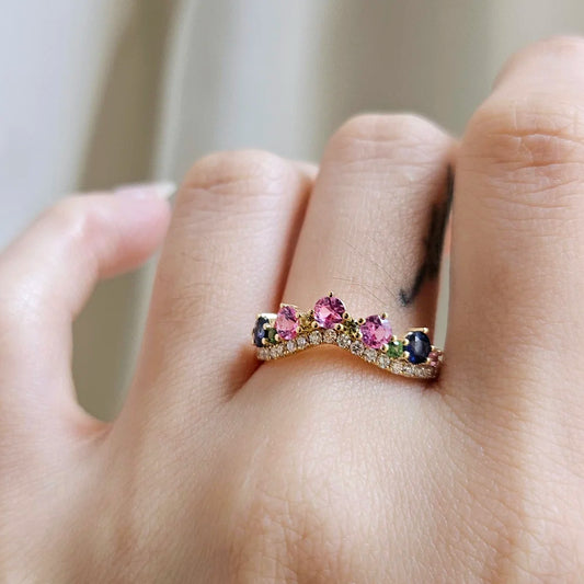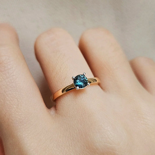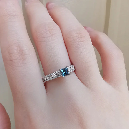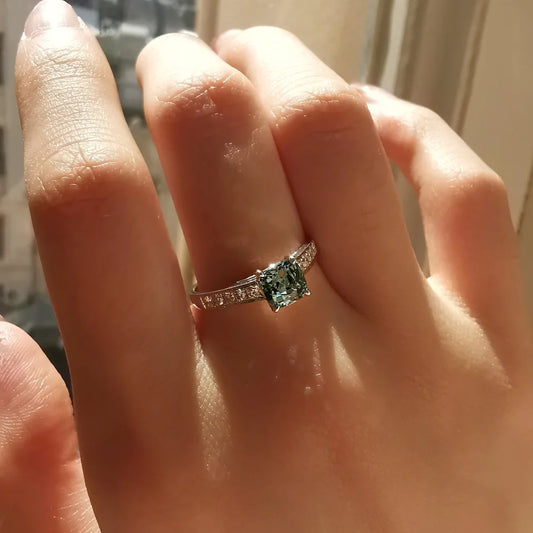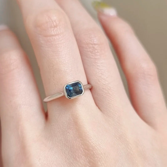 18K Emileigh Teal Cushion Green Sapphire Ring