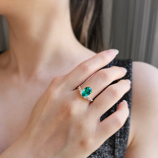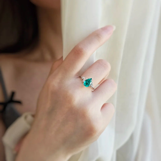 18K Gardenia Pear Lab-grown Emerald Ring