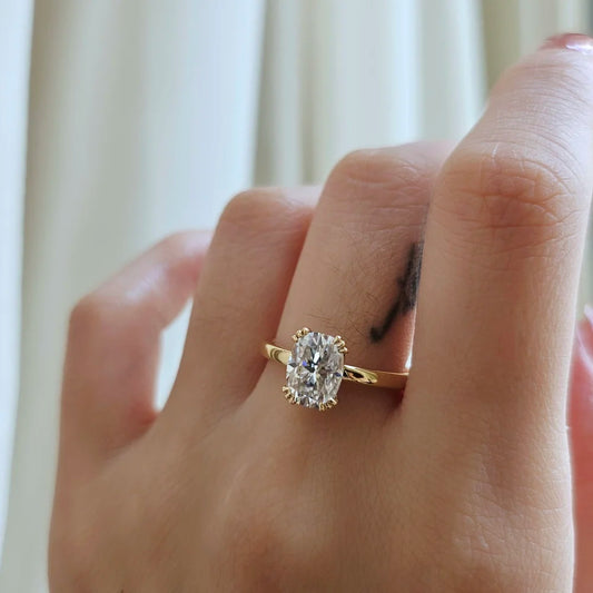 14K Emerald Cut Moissanite Ring with Hidden Halo