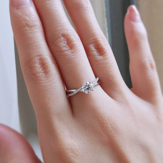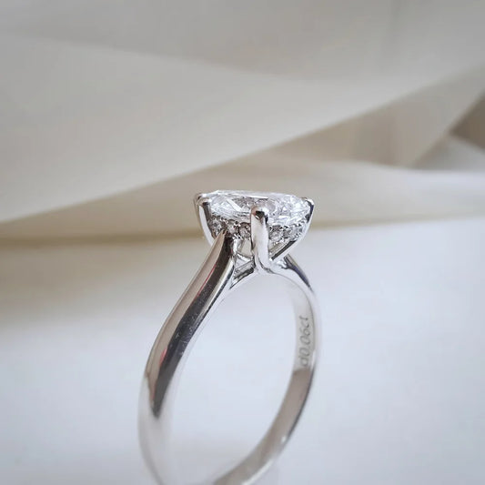 18K Raindrop Cathedral Lab Diamond Engagement Ring