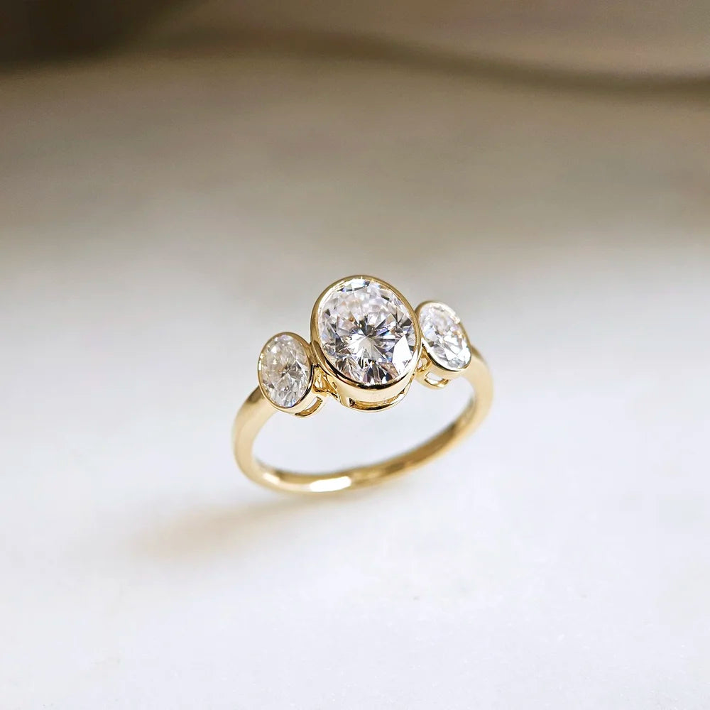 14K Bezel Triology Moissanite Ring